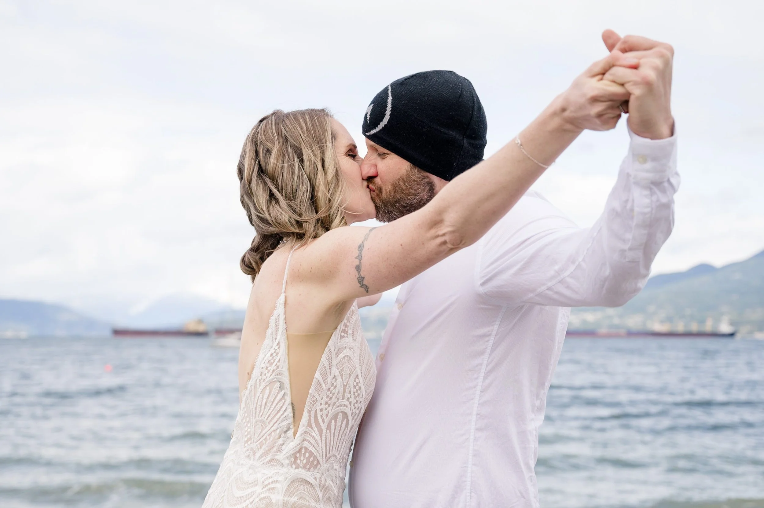Beach ceremony - Are you a water baby at heart? A beach elopement is a classic choice for adventure-seeking couples. Choose a secluded spot on the sand and exchange vows with the sound of the waves in the background. You can even jump in the water for a post-wedding swim. Pro tip: Low tide at Spanish Banks makes for an amazing backdrop, especially if you’re bringing your four-legged family member(s)